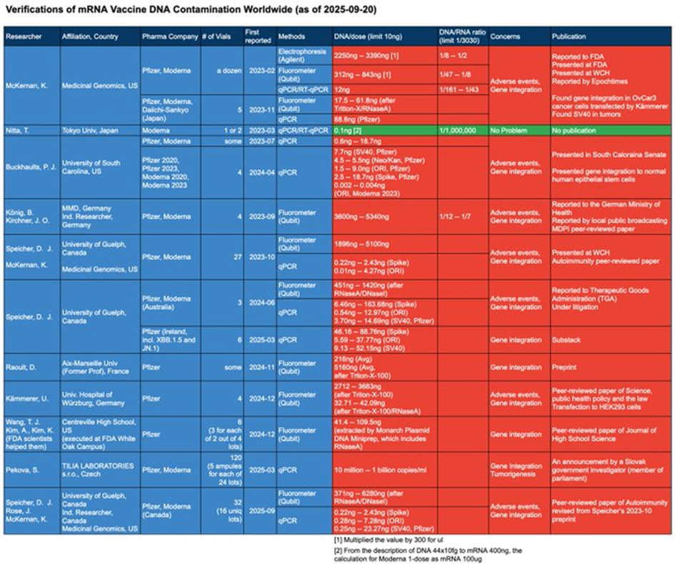 Tá ostatná robota ( Speicher DJ, Rose J, McKernan K. Quantification of residual plasmid DNA and SV40 promoter-enhancer sequences in Pfizer/BioNTech and Moderna modRNA COVID-19 vaccines from Ontario, Canada. Autoimmunity. 2025 Dec;58(1):2551517. doi: 10.1080/08916934.2025.2551517) by mala byť povinným čítaním.