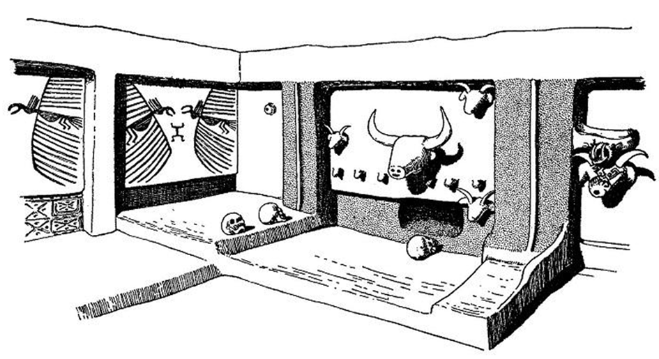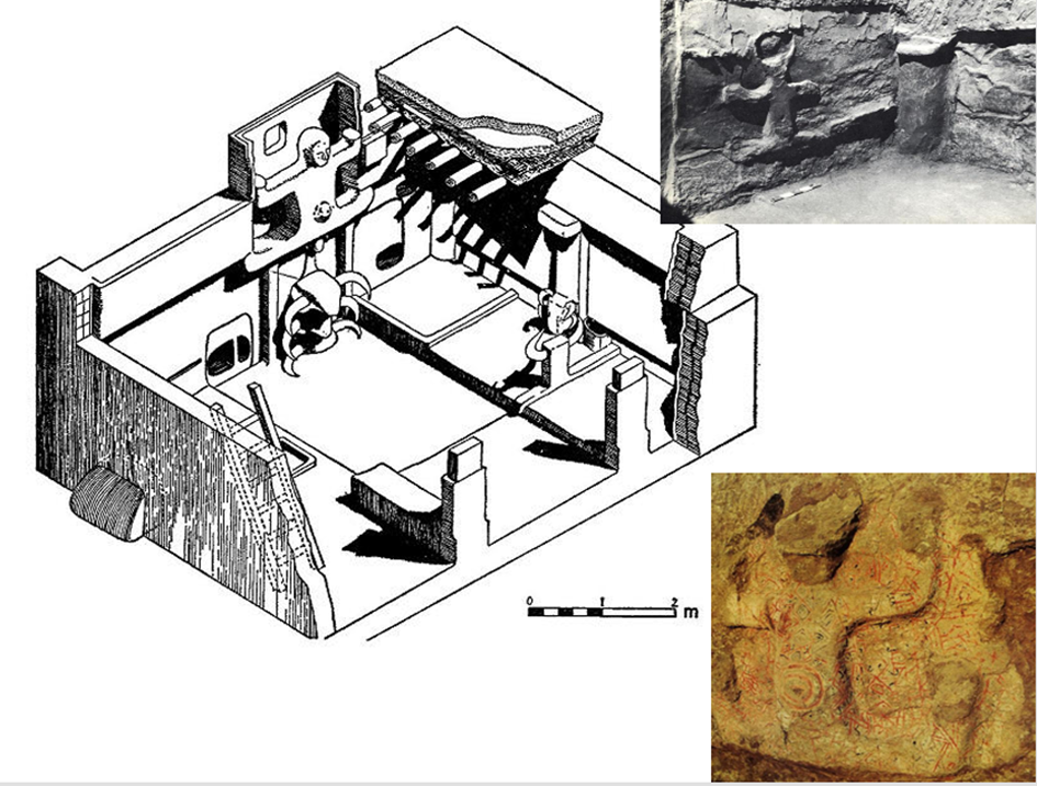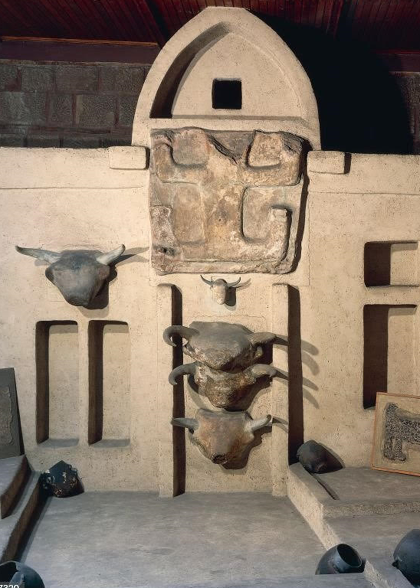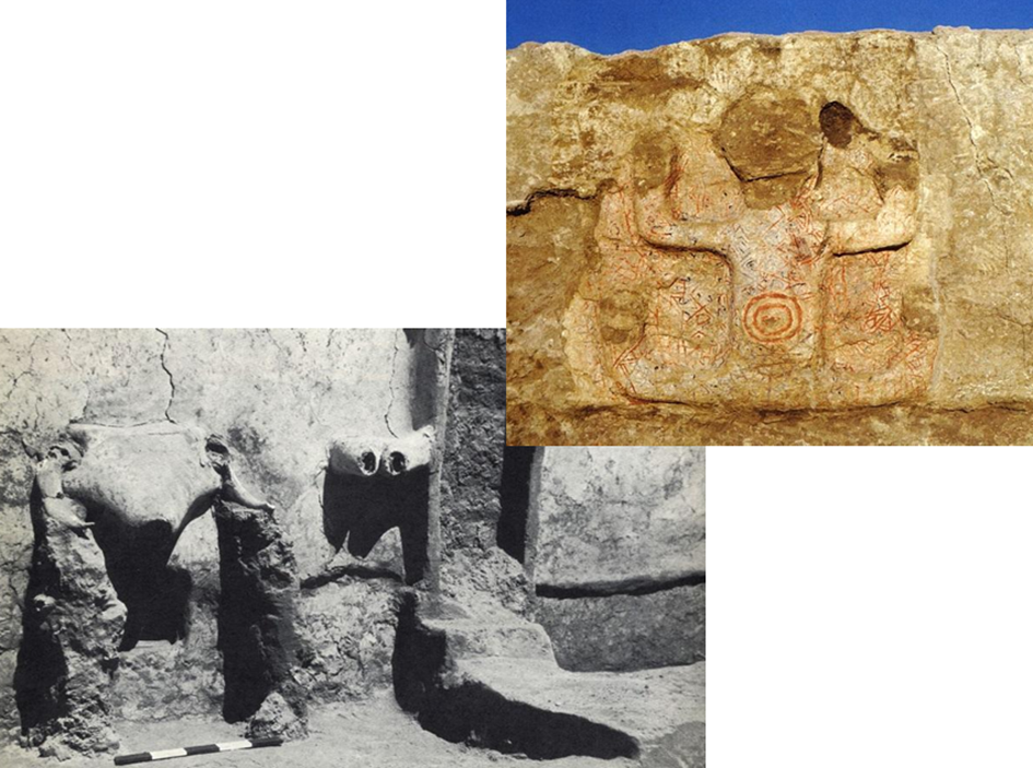 Sú názory, teórie odkiaľ náš slovenský znak pochádza. Nebudem ich tu rozpisovať. Pri pozeraní tohto pdf, https://www.academia.edu/128629218/Die_Frau_im_neolithischen_Dorf_Catal_H%C3%B6y%C3%BCk mi napadlo niečo iné. Pozrite si prosím nasledujúcich niekoľko obrázkov. Upozorňujem, že sa našli pri vykopávkach v Ҫatalhöyük (Turecko) a sú staré asi 8500-9500 rokov. Vtedy tu existovala civilizácia, ktorá si svoje domy (podľa rekonštrukcie) „ozdobovala“ takto: