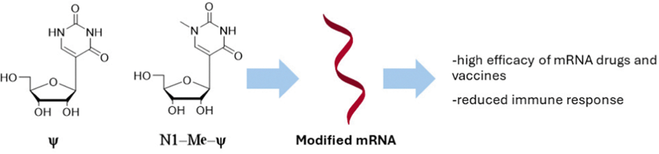 Neviem, ktoré „modifikované nukleotidy“ mal na mysli, ale v mRNA preparátoch je modifikovaný len jeden nukleozid, a to uridín, ktorý je pseudouridín (Ψ), a je aj ešte metylovaný. (Pseudouridine and N 1-methylpseudouridine as potent nucleotide analogues for RNA therapy and vaccine development (https://pubmed.ncbi.nlm.nih.gov/38725905/ ). Takto sú modifikované len uridíny. Nie iné nukleozidy (https://sk.wikipedia.org/wiki/Nukleozid ), teda adenozín, cytidín, guanozín.