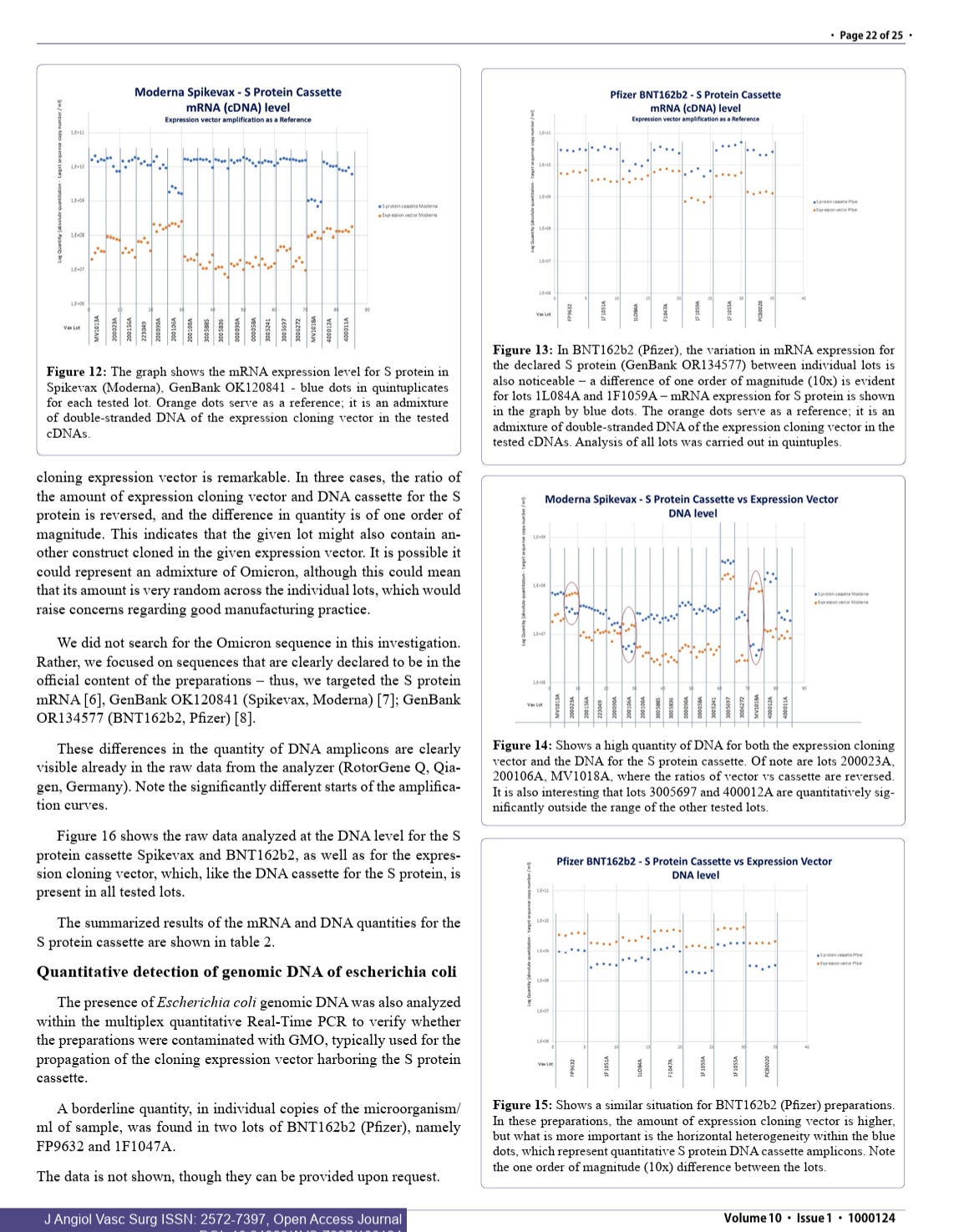 Čiastočne sa tým zaoberáte. McKernan, Speicher, Buckhaults a Fleming (Kotlár, Peková) všetci zaznamenali 4-6 CT posuny medzi Spike a plazmidovými kostrami, čo posilňuje obavy spoločnosti Moderna, že qPCR nám môže poskytnúť odpoveď len s presnosťou na 2 rády. BioNtech (Lenk et al) aj Sutton et al uverejnili, že DNaseI má 100-násobný handicap pri hydrolýze hybridov RNA:DNA, zatiaľ čo regulátori sú presvedčení, že jediný qPCR amplikón (kde tieto hybridné druhy neexistujú) môže tento problém vyriešiť! Vaše vlastné údaje qPCR vykazujú takú veľkú variabilitu, že keď ste mali na stole peniaze na titráciu vašich Illumina behov, rozhodli ste sa pre fluorometriu! Činy hovoria viac ako ideológia a jedovaté slová.