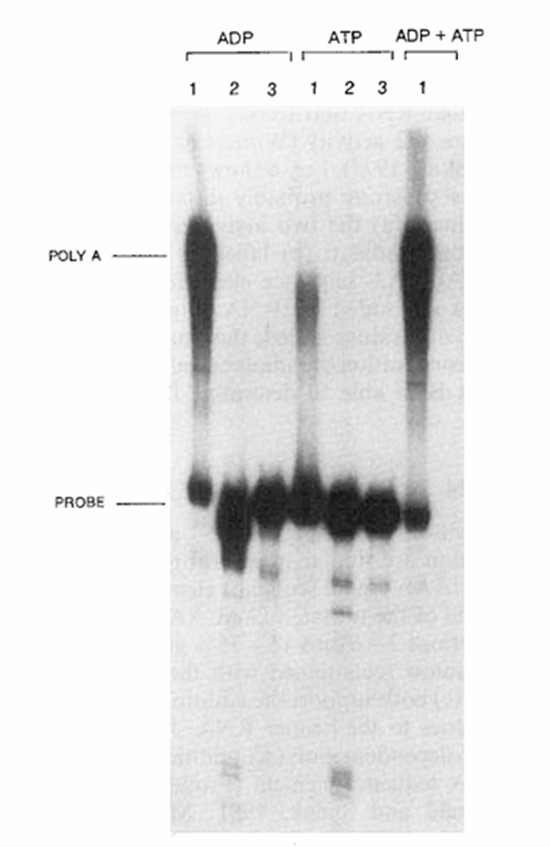 Po druhé, v práci sa píše o tom, že čím je tzv. polyadenylačný komplex „čistejší“, tak „lepším“ substrátom pre špecifickú polyadenyláciu mRNA je ADP (adenozíndifosfát), a nie ATP (adenozíntrifosfát):