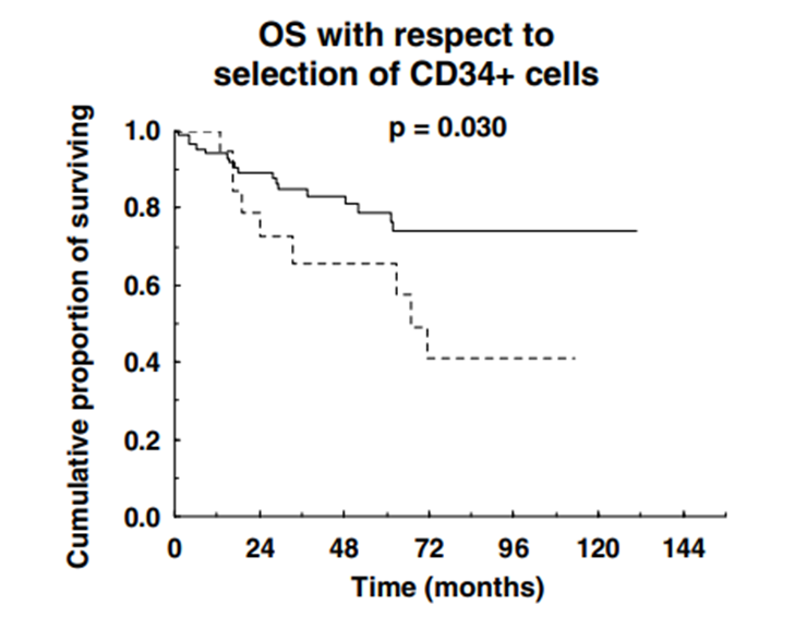V roku 1995, teda pred tridsiatimi rokmi bola uskutočnená autológna transplantácia s CD34+ pozitívne selektovanými kmeňovými bunkami. Svoje miesto si našla v liečbe Hodgkinovej choroby. Pri transplantácii pozitívne selektovanými (CD34+) bunkami dlhodobo prežíva takmer 80 % pacientov na rozdiel od 40 % pacientov, u ktorých boli použité neselektované KKB („nečistený štep“).
